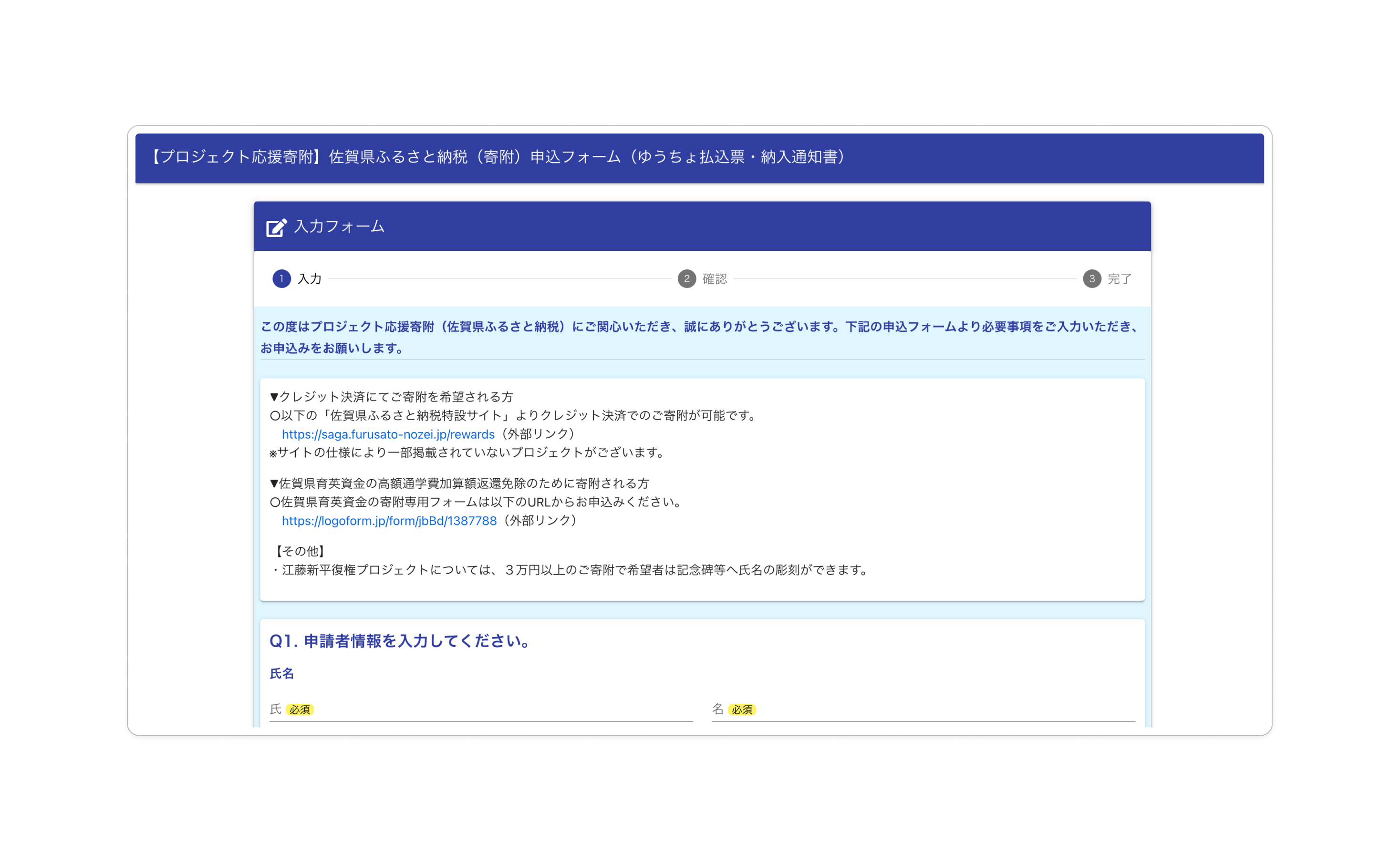 3.寄付のお申し込み: